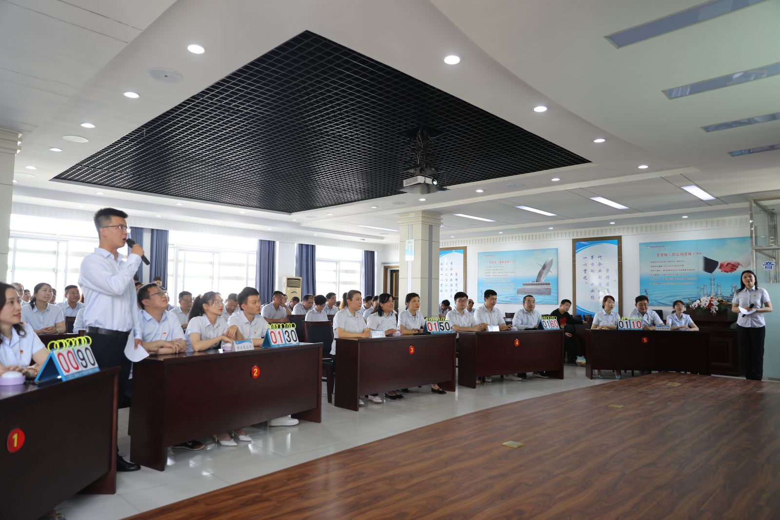 本次競(jìng)賽共分為必答題,搶答題,風(fēng)險(xiǎn)題,現(xiàn)場(chǎng)互動(dòng)四個(gè)環(huán)節(jié)。在必答題環(huán)節(jié),各代表隊(duì)選手逐個(gè)答題,必答題結(jié)束后五支代表隊(duì)平分秋色;來(lái)到搶答題環(huán)節(jié),比賽現(xiàn)場(chǎng)氣氛逐漸熱烈,機(jī)關(guān)、客服支部分?jǐn)?shù)你追我趕,一度十分焦灼,現(xiàn)場(chǎng)觀眾也不時(shí)為選手的精彩答題喝彩;在現(xiàn)場(chǎng)互動(dòng)環(huán)節(jié),觀眾積極踴躍參與答題,現(xiàn)場(chǎng)也掌聲不斷;最后的風(fēng)險(xiǎn)題環(huán)節(jié),比賽進(jìn)入白熱化階段,選手們紛紛為自己的隊(duì)伍做著最后的努力。經(jīng)過(guò)激烈的角逐,最終客服支部代表隊(duì)獲得一等獎(jiǎng),機(jī)關(guān)、退休支部代表隊(duì)分別獲得二、三等獎(jiǎng)。在知識(shí)競(jìng)賽結(jié)束后,總公司黨委副書記、總工程師李振剛為獲獎(jiǎng)代表隊(duì)頒獎(jiǎng)。